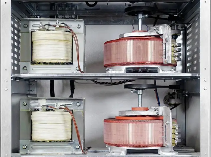 — плавная регулировка (некоторые типы стабилизаторов относятся к ступенчатому типу, поэтому в процессе регулировки напряжения они могут вызывать мигание осветительных приборов из-за переключения ступеней стабилизации, что доставляет дискомфорт). Все модели NDCORP принадлежат к электромеханическому типу стабилизаторов, который регулирует напряжение плавно и без ступеней.